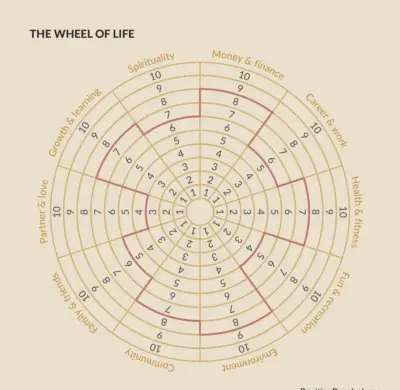 Roata vieții este o bază în seturile de instrumente ale multor antrenori. Acest instrument simplu permite clienților să -și evalueze satisfacția cu diferitele domenii ale vieții lor, inclusiv sănătatea, familia și situația financiară.